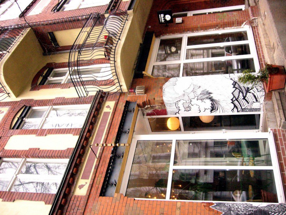 Fußboden (Estrich) wurde neu gegossen und lackiert, das sichtbare Mauerwerk wurde entweder kreativ besprüht oder mit Gipskarton verstärkt und gespachtelt. Auch Tapete aus den 70er lebt hier wieder auf.