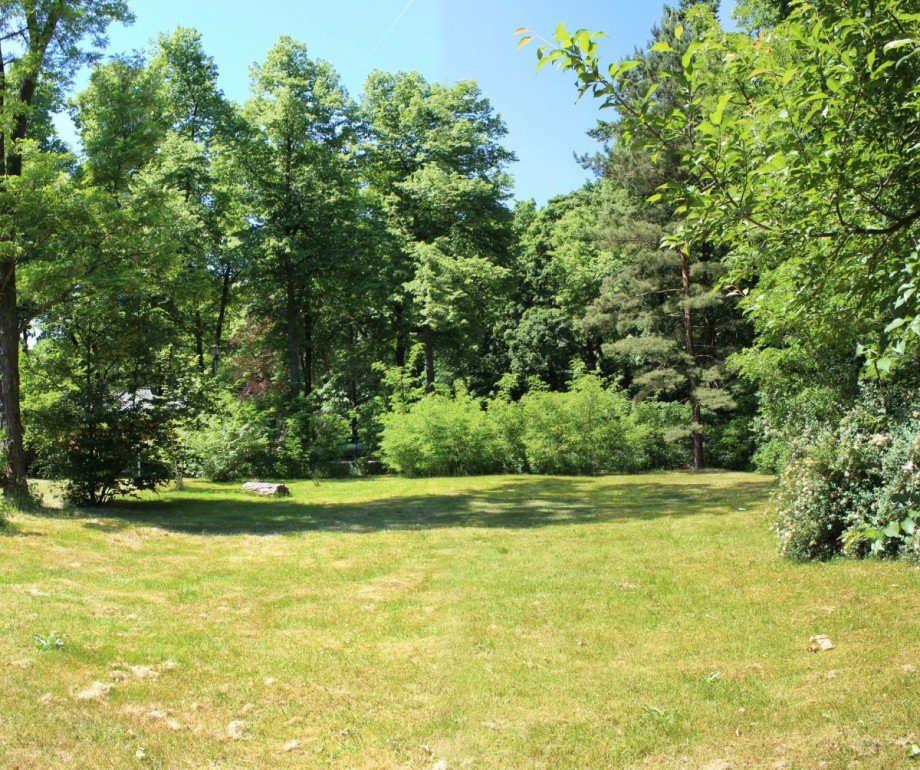 Das konisch geschnittene Grundstück ist 3-seitig eingefriedet und durch einen natürlich gewachsene Pflanzenbestand von der Straße kaum einsehbar. Die straßenseitige Flurstücksbreite beträgt ca. 30 Meter und die Flurstückstiefe etwa 57 Meter. Vorhandener, alter Baumbestand säumt das Areal im hinteren Teil und zur Grundstücksgrenze. Das Grundstück liegt im Erhaltungsgebiet "Hessenwinkel".