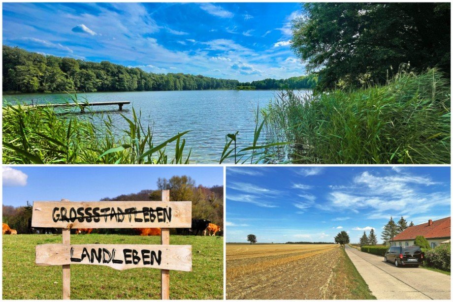 Das Doppelhaus befindet sich in einer kleinen Dorfgemeinde, frei stehend ohne Nachbarbebauung und zur Straßenseite mit freiem Blick auf weitläufige Feldflächen. In nur wenigen Minuten zu Fuß erreichen Sie eine kleine Badestelle am See, idyllisch gelegen, eingebettet in Wald und Wiesen.